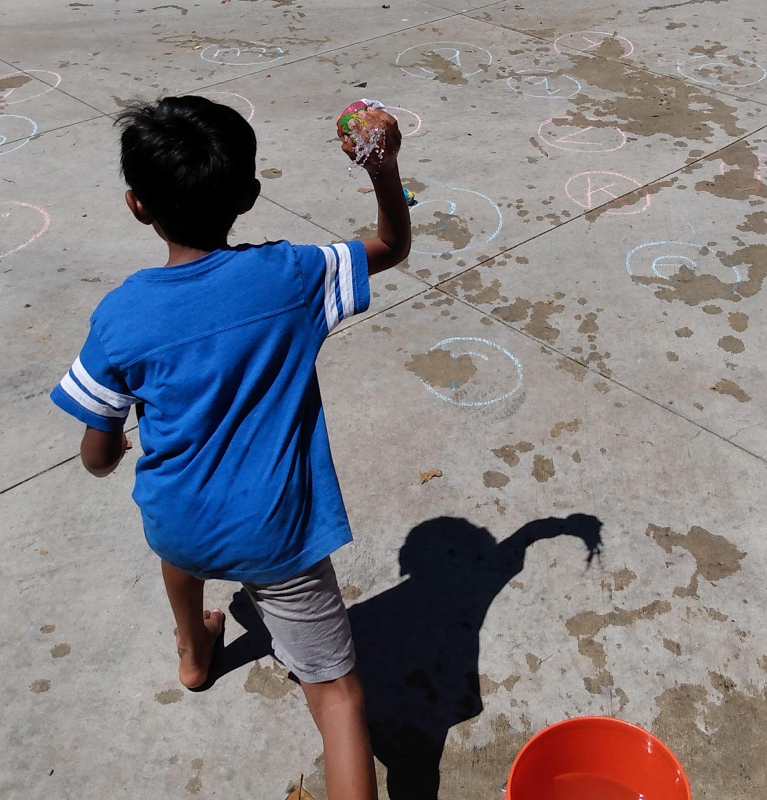1. Water Target - Use Splash Balls to target throw onto letters, numbers, or sight words written on the ground with sidewalk chalk (Splash Balls are soft and can be used again and again vs. water balloons)